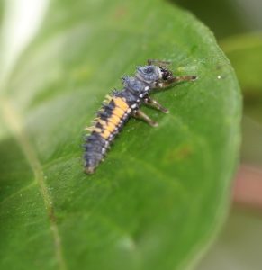 The larval stage of the multicolored Asian lady beetle is a voracious predator of pecan aphids. (Photo by Ted Cottrell, USDA)