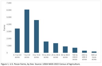 According to the 2022 Census of Agriculture, there are more than 19,000 pecan farms in the United States. A majority of these farms are relatively small, with one-half of farms having less than five acres and three-quarters having less than 15 acres (Figure 1). Like other farm sectors, the majority of production is associated with...